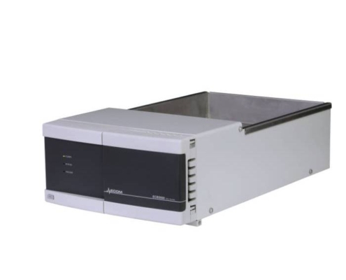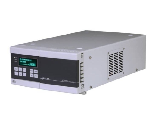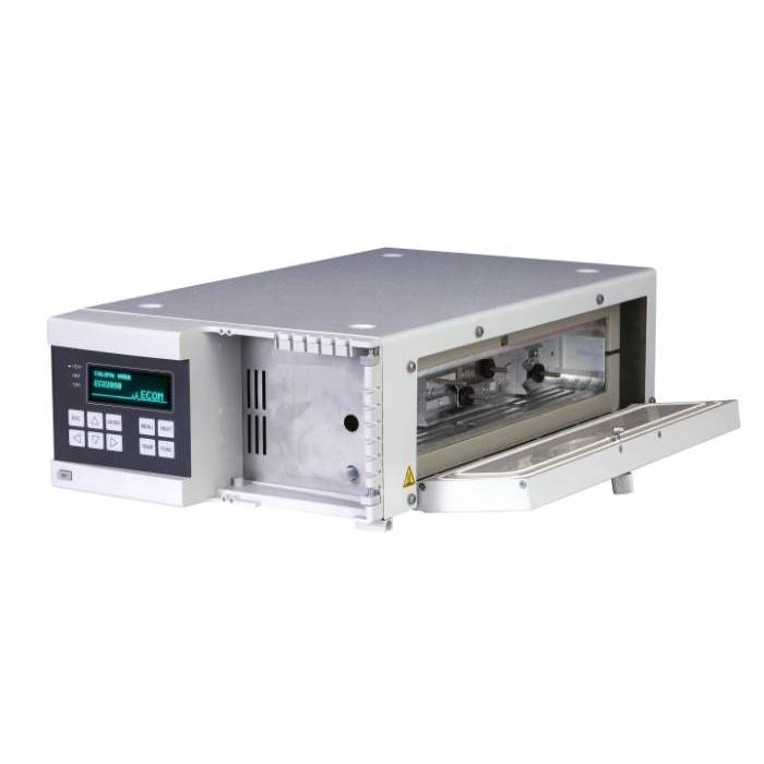 This isocratic pump works with Gradient Box ECB2004B as a quaternary gradient pump. Flow rate range is 0.02-10.00 ml/min and pressure limit at 40 MPa. Unit software includes new learning algorithm for pulsation suppression and many testing and diagnostic functions.