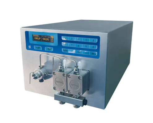 It accommodates a container for solvent bottles, built-in high- efficiency vacuum degausser and four-way gradient valve. Up to four solvent lines may be degassed simultaneously by one unit. Four- way gradient valve is controlled from the pump ECP2010.