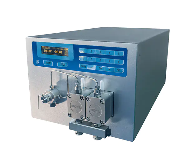High effective HPLC system containing UV-VIS detector, column oven, analytical pump and gradient box. Detector with continuously variable wavelength 190-800 nm and very low noise level offers high-speed sampling up to 100 Hz.